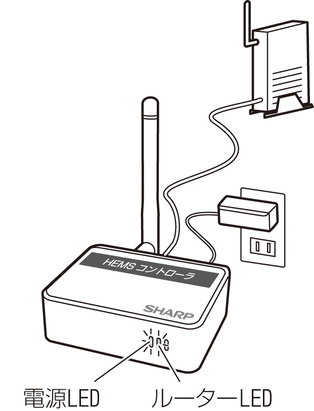 HEMS コントローラの電源LED、ルーターLED が点灯していることを確認してください。